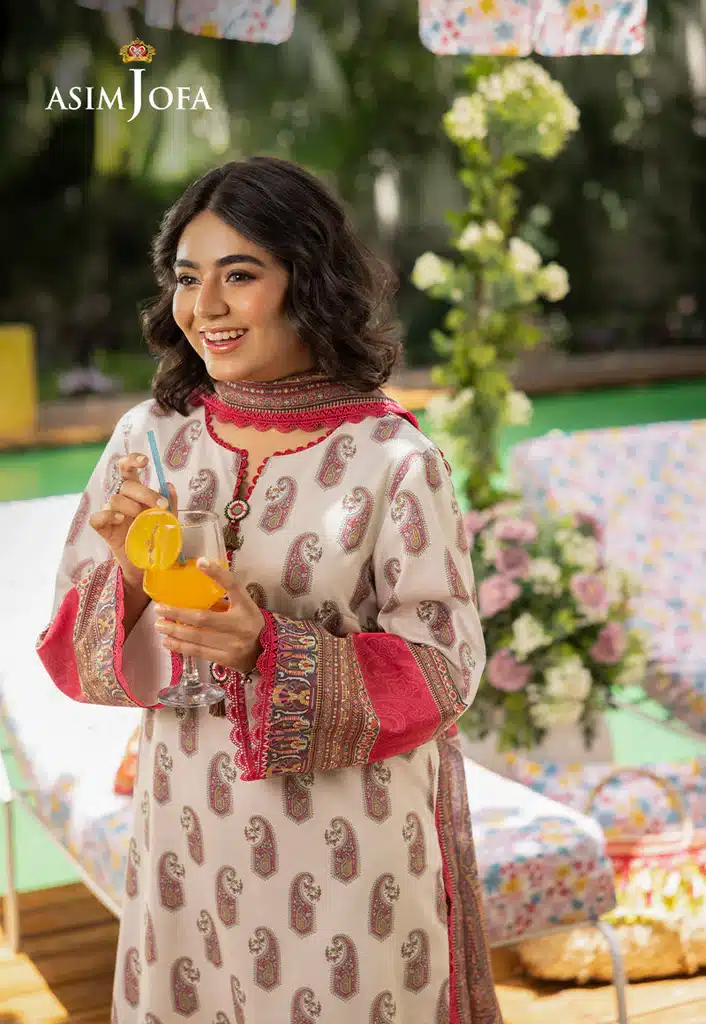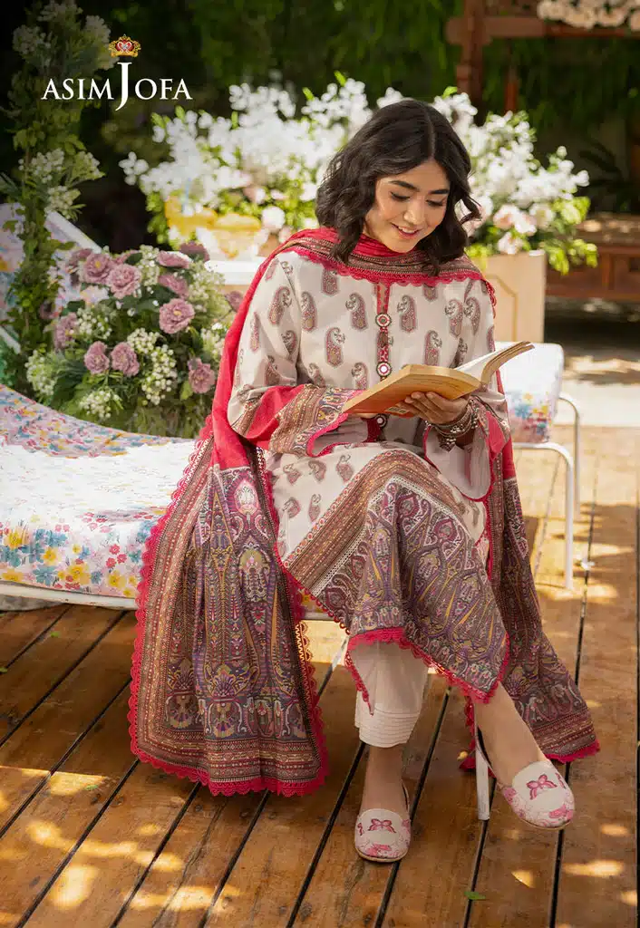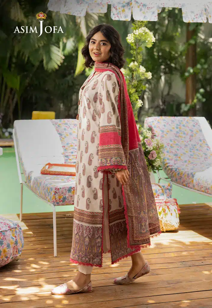 Asim Jofa Lawn Essential Prints | Ivory Pink